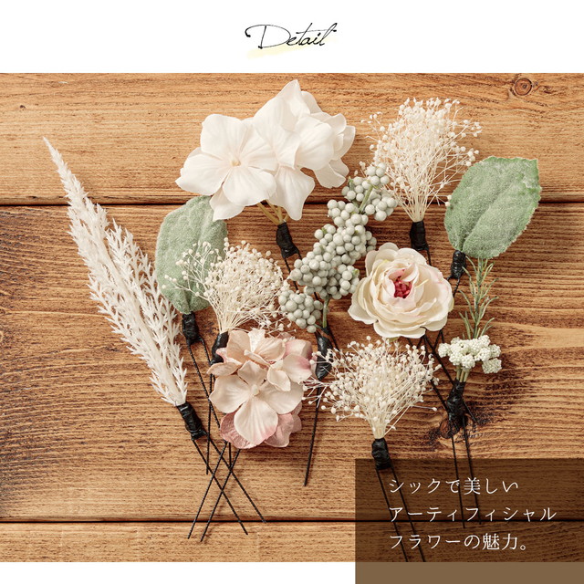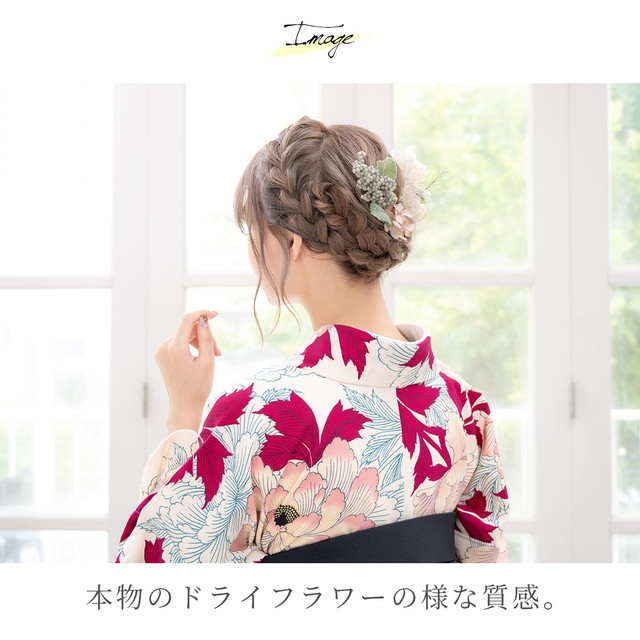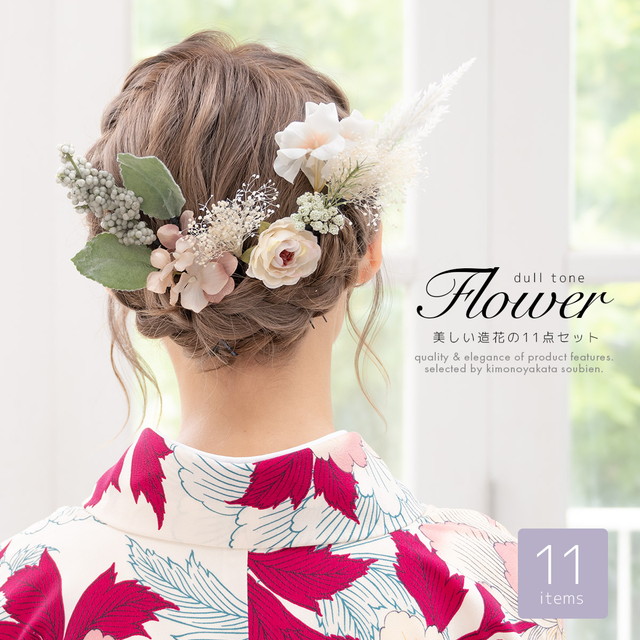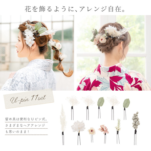 成人式 髪飾り 白系 ピンクベージュ系 卒業式 袴 振袖 ドライフラワー風 造花 11点 セット 花 フラワー アースカラー Uピン かすみ草 メール便 送料無料