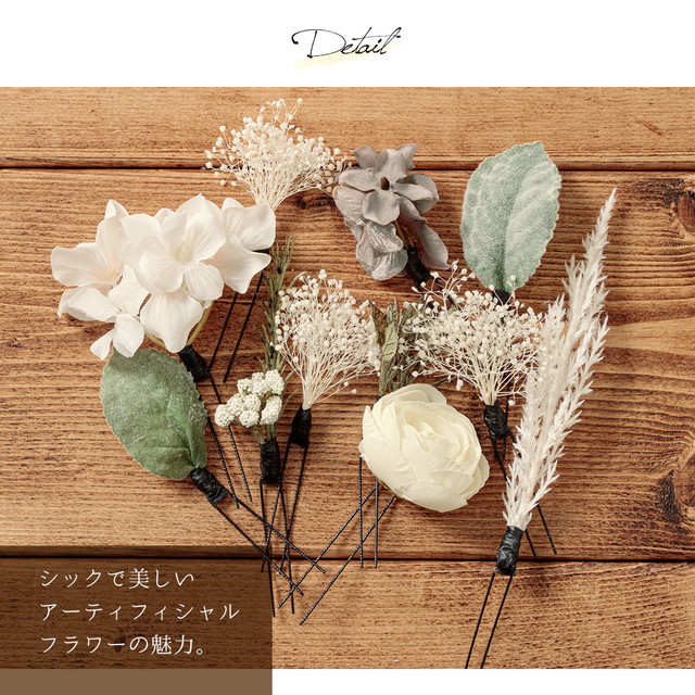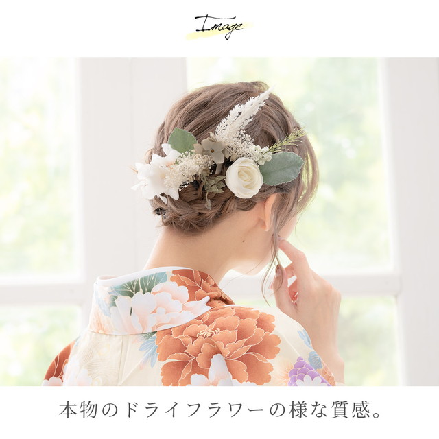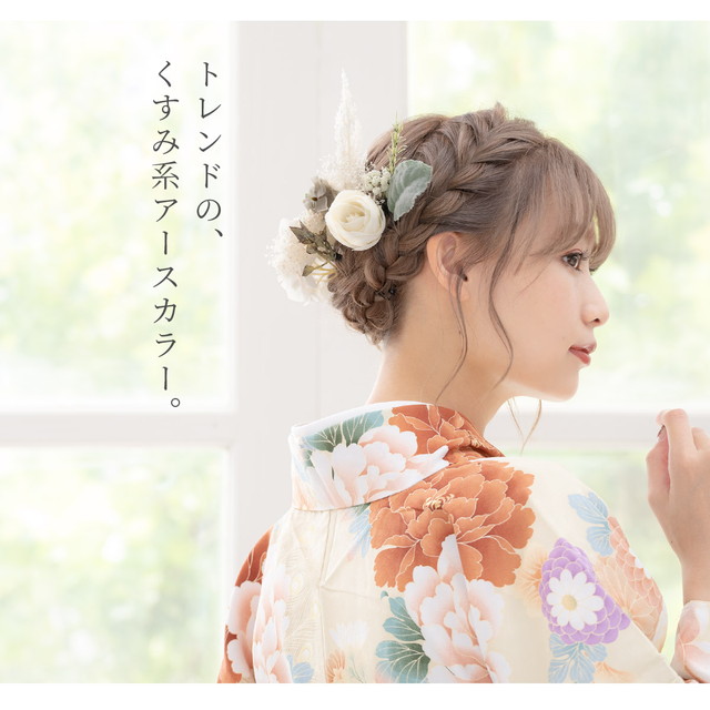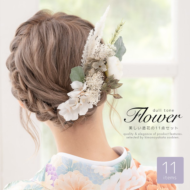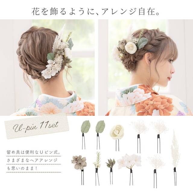 成人式 髪飾り 白系 緑系 ベージュ 卒業式 袴 振袖 ドライフラワー風 造花 11点 セット 花 フラワー アースカラー Uピン かすみ草 メール便 送料無料