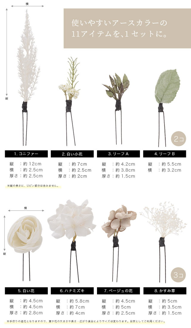 和装のヘアスタイルを彩る、花の髪飾り11点の小花セットです。