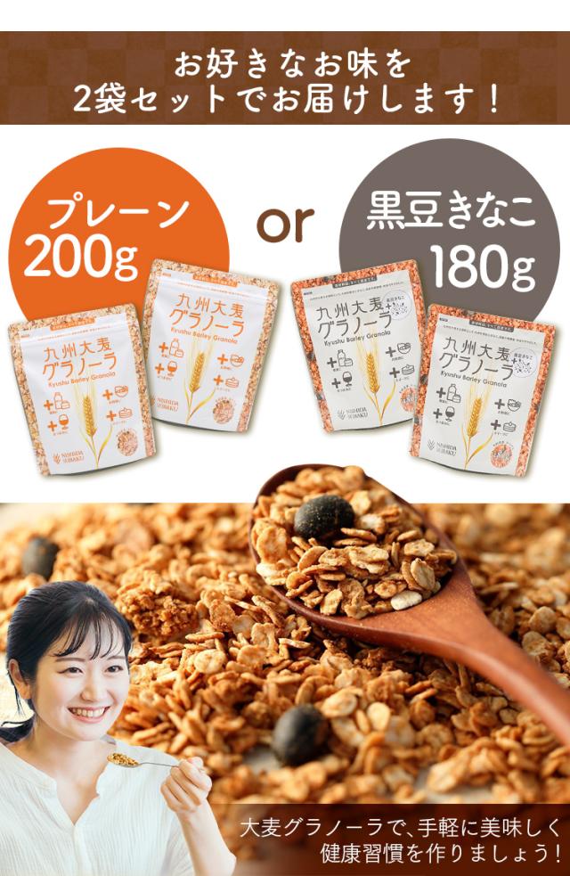 【2袋】グラノーラ 大麦グラノーラ 九州大麦グラノーラ プレーン200gプレーン 黒豆 黒豆きなこ きなこ 朝食 おやつ 健康 大麦 軽食 送料無料