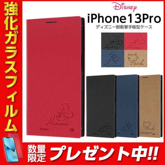 iPhone13 Pro 6.1inch ケース 手帳型 ディズニー キャラクター 耐衝撃 サイドマグネット ミッキー ミニー ドナルド プーさん ストラップ iPhone13Pro ガラスフィルム付き