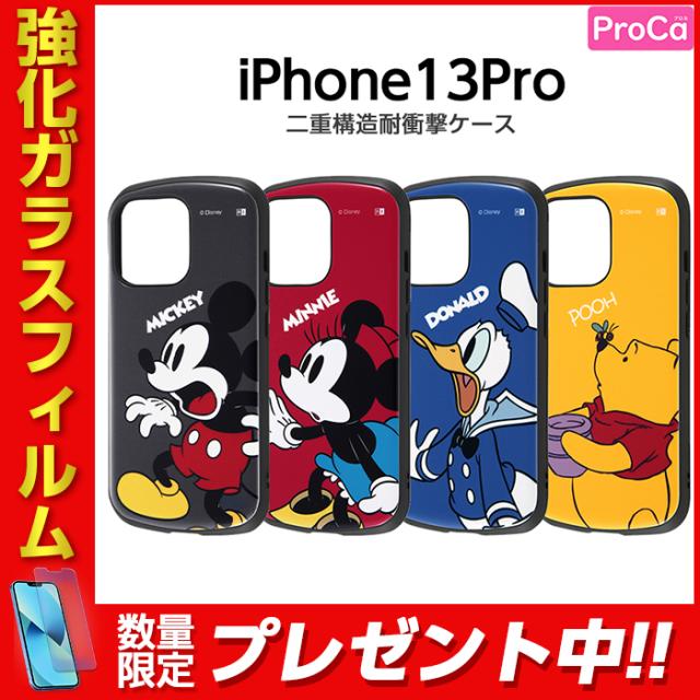 iPhone13 Pro 6.1inch ケース ディズニー キャラクター 耐衝撃ケース ProCa ミッキー ミニー ドナルド プーさん ストラップホール ハード ソフト iPhone13Pro ガラスフィルム付き
