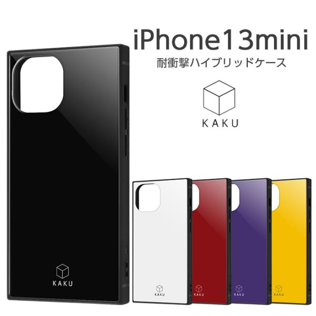 iPhone13mini 5.4inch ケース 耐衝撃ハイブリッドケース KAKU ブラック ホワイト レッド パープル イエロー ストラップホール ストラップ iPhone 13 mini