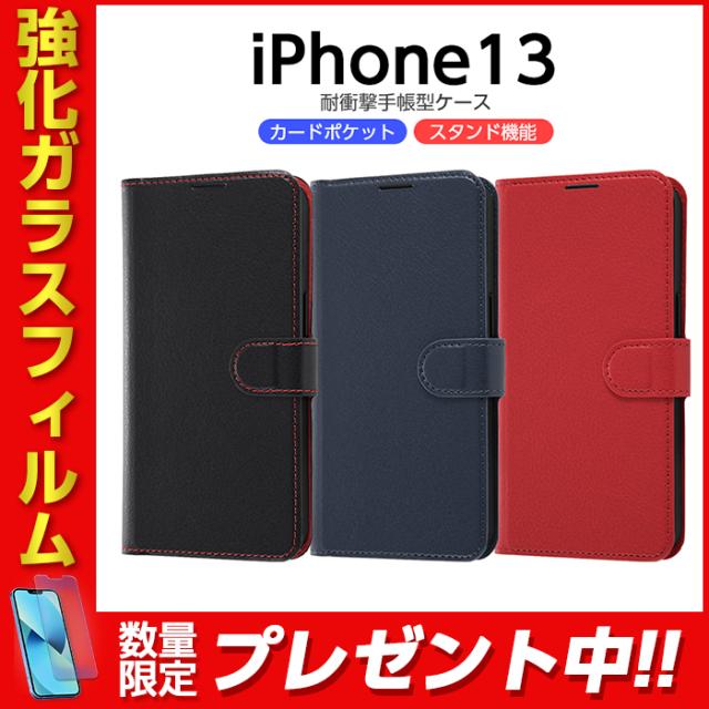 iPhone13 6.1inch ケース 手帳型 耐衝撃 手帳型ケース 手帳ケース 手帳カバー シンプル マグネット ブラック レッド ネイビー ストラップホール iPhone 13 かわいい おしゃれ 韓国 iPhoneケース カード収納 カード ポケット