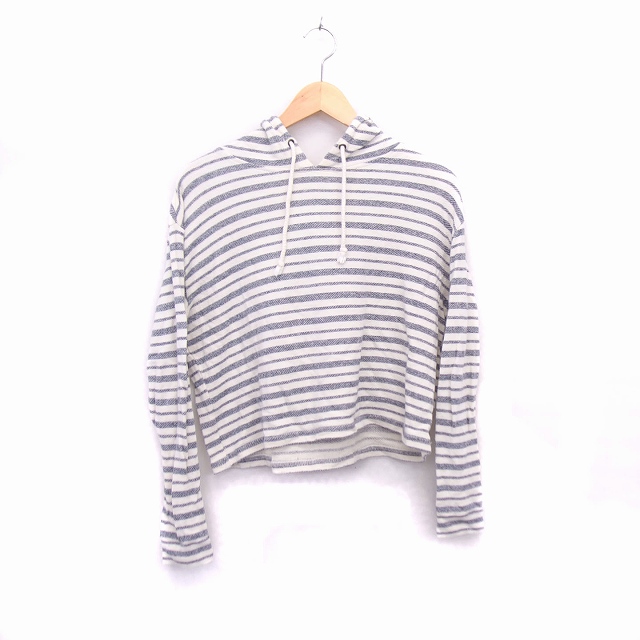 【中古】フォーエバー21 FOREVER21 ニットパーカー フード 長袖 コットン 綿 ボーダー 柄 S アイボリー ネイビー 紺