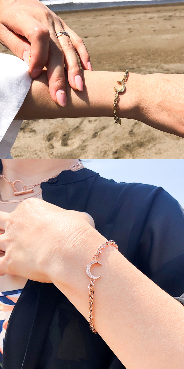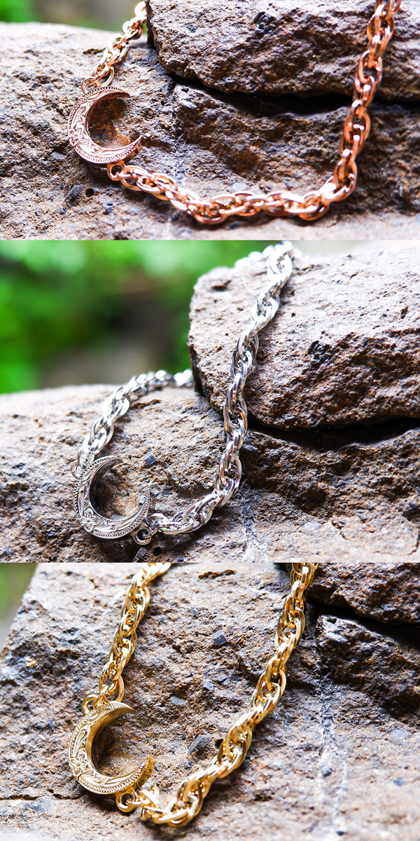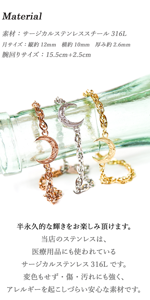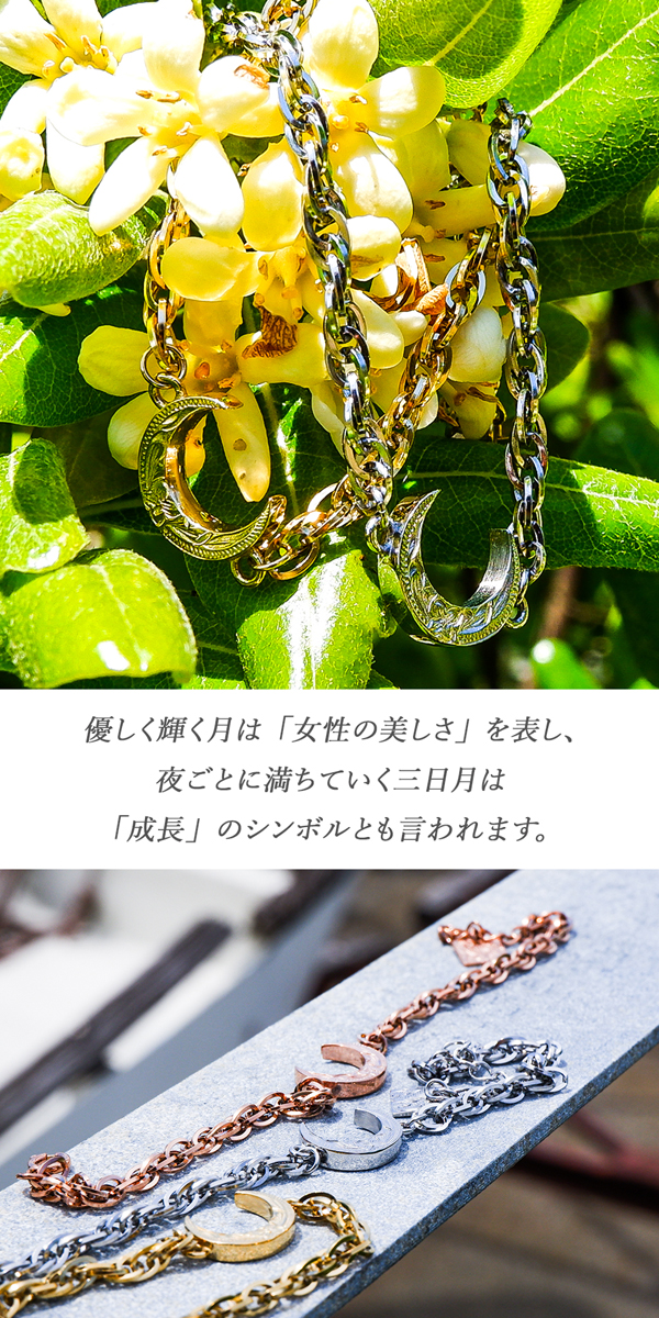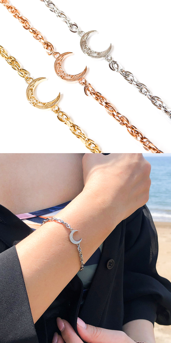 ハワイアンジュエリー ブレスレット 三日月 レディース メンズ スクロール 波 金属アレルギー対応 サージカル ステンレス プレゼント インスタ ラッピング対応