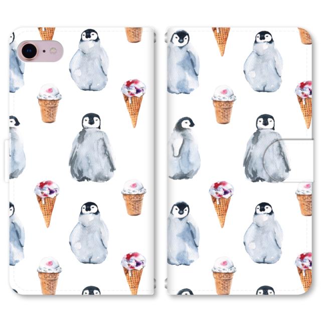 スマホケース 手帳型 iPhone13 iPhoneSE2 アイフォン 8 aquos sense GooglePixel xperia galaxyなど多機種制作対応 m3308_ペンギン WH