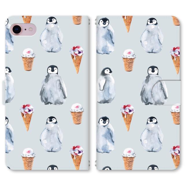 スマホケース 手帳型 iPhone13 iPhoneSE2 アイフォン 8 aquos sense GooglePixel xperia galaxyなど多機種制作対応 m3309_ペンギン GY