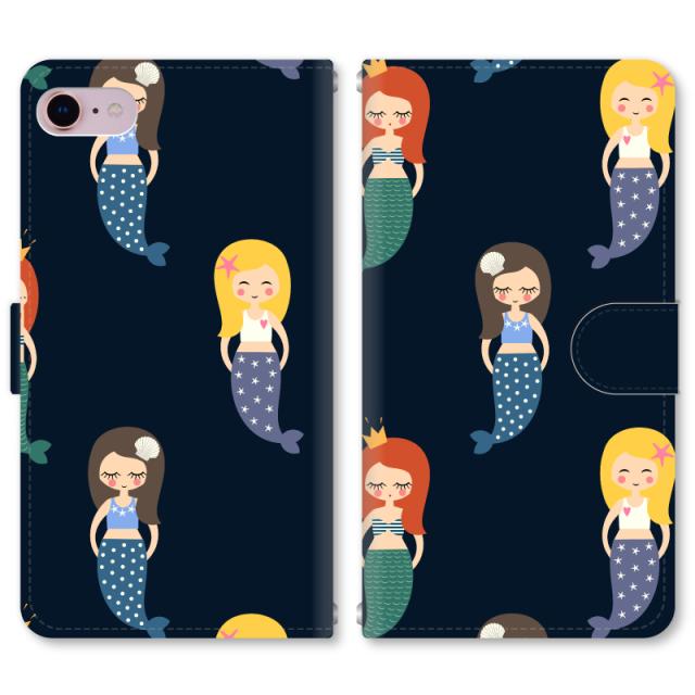 スマホケース 手帳型 iPhone13 iPhoneSE2 アイフォン 8 aquos sense GooglePixel xperia galaxyなど多機種制作対応 m3322_マーメイドA ネイビー