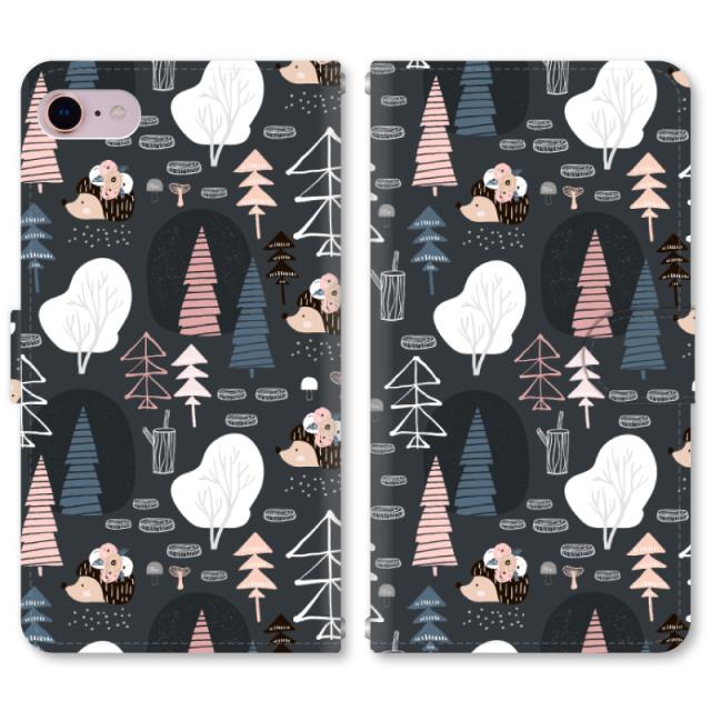 スマホケース 手帳型 iPhone13 iPhoneSE2 アイフォン 8 aquos sense GooglePixel xperia galaxyなど多機種制作対応 m3338_森の中(はりねずみ)