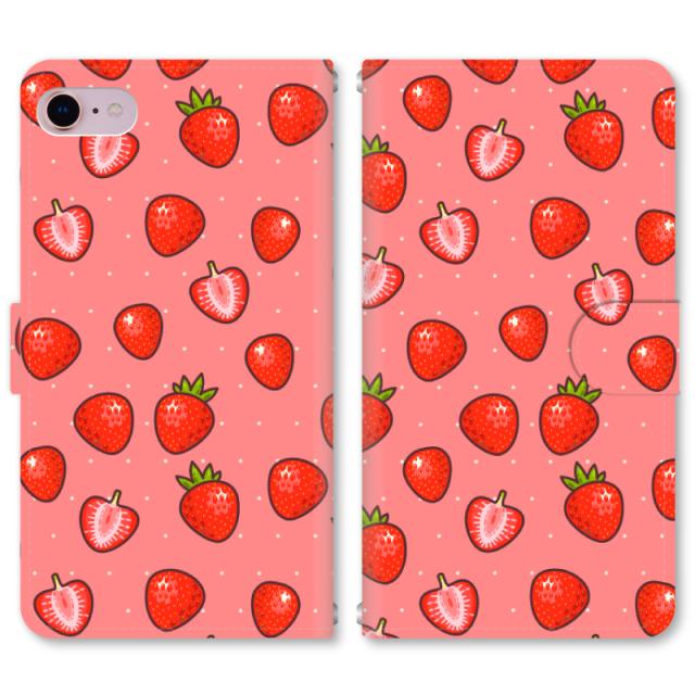 スマホケース 手帳型 iPhone13 iPhoneSE2 アイフォン 8 aquos sense GooglePixel xperia galaxyなど多機種制作対応 m3354_ストロベリーB