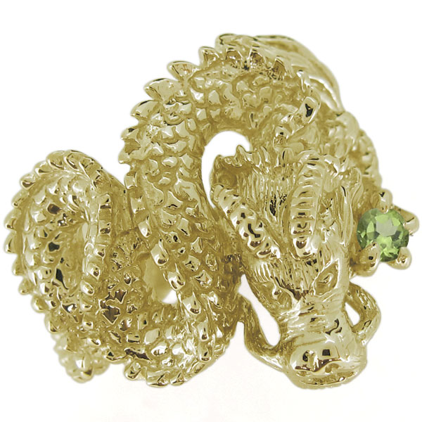 メンズ・指輪・龍・ペリドット・8月誕生石・リング・ドラゴン・10金