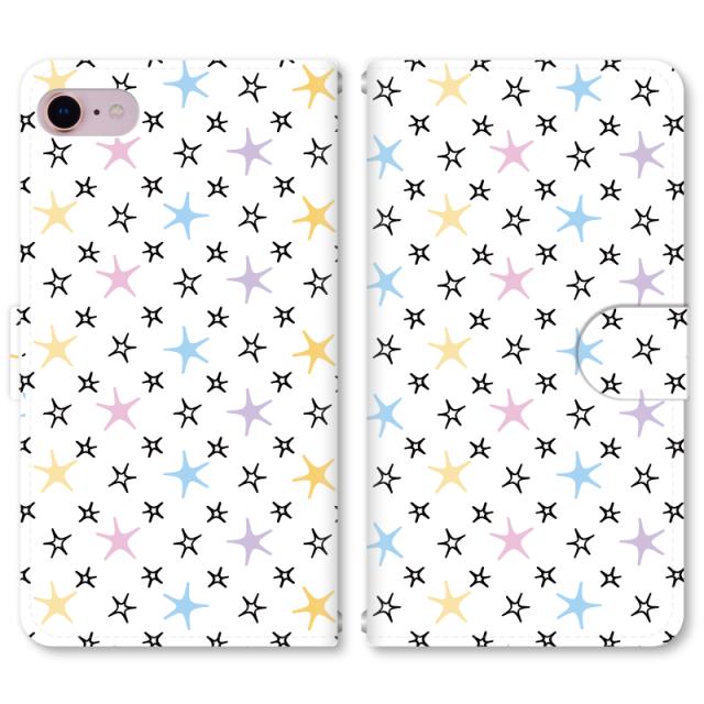 スマホケース 手帳型 iPhone13 iPhoneSE2 アイフォン 8 aquos sense GooglePixel xperia galaxyなど多機種制作対応 m2386_カラフル星