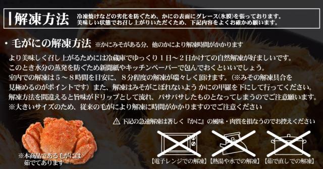 毛がには繁殖力が低く、乱獲すると中々漁獲量が回復しないと云われています。また、その生態の繊細さと同様、毛がにの身はとても繊細です。