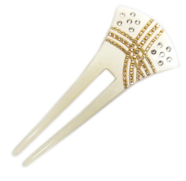 かんざし 簪 髪飾り アイボリー塗ラインストーンクロス 日本製 着物 きもの 留袖 結婚式 訪問着 振袖 成人式 浴衣 ゆかた