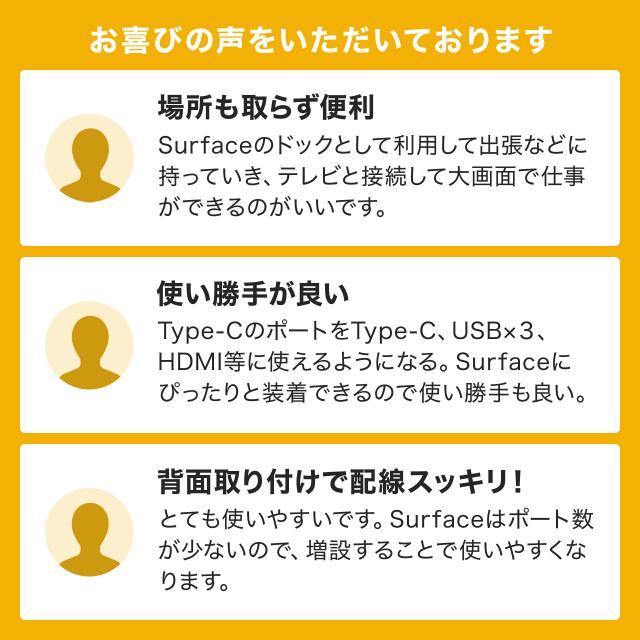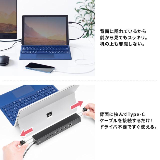 Surface専用ドッキングステーション USB Type-C接続 4K/30Hz HDMI USB×3 LAN USB PD 100W Surface Pro 8 Surface Go 2など対応 [400-HUB039BK3]