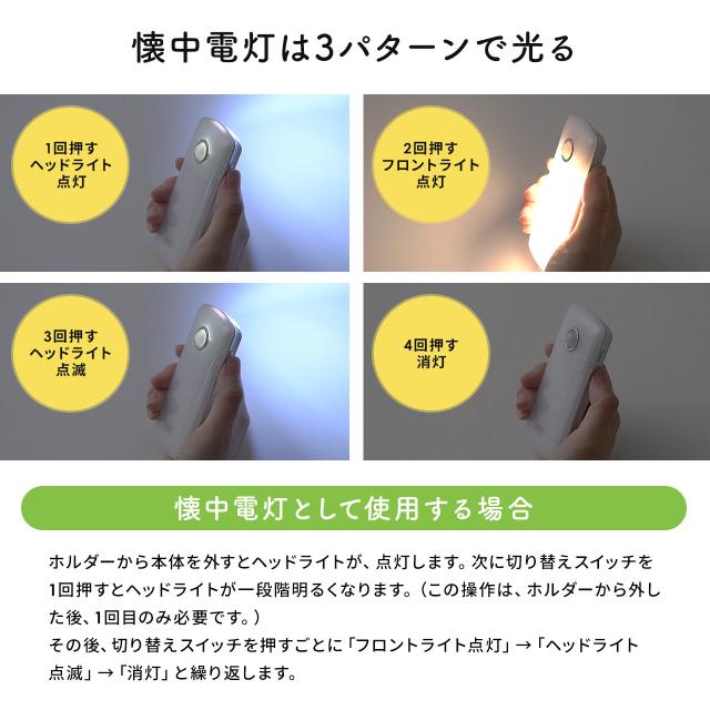 ■連続使用時間:ヘッドライト/約1.5時間、フロントライト/約2.5時間