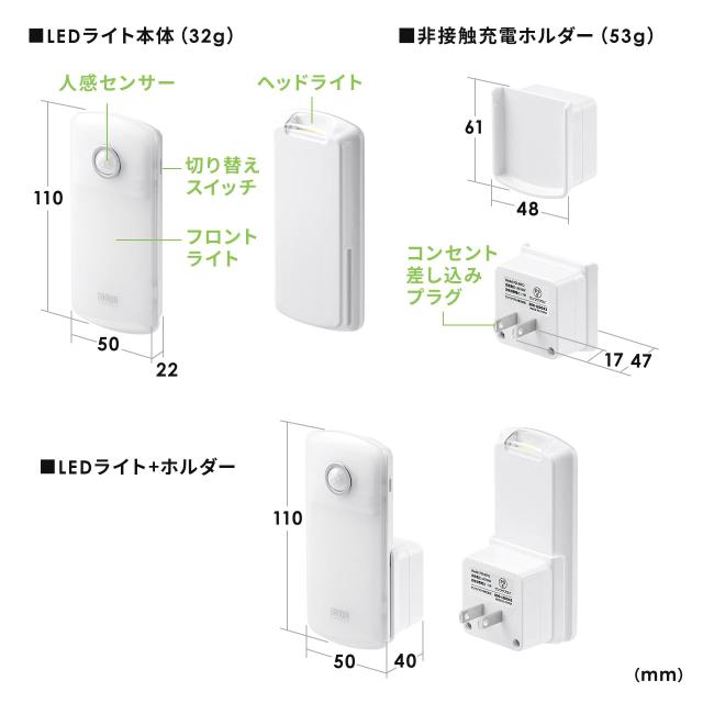 人感センサー付き LEDライト 屋内用 足元灯 充電式 AC電源[800-LED043]