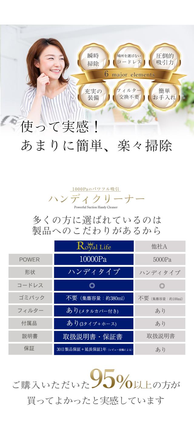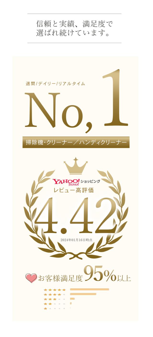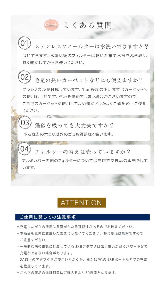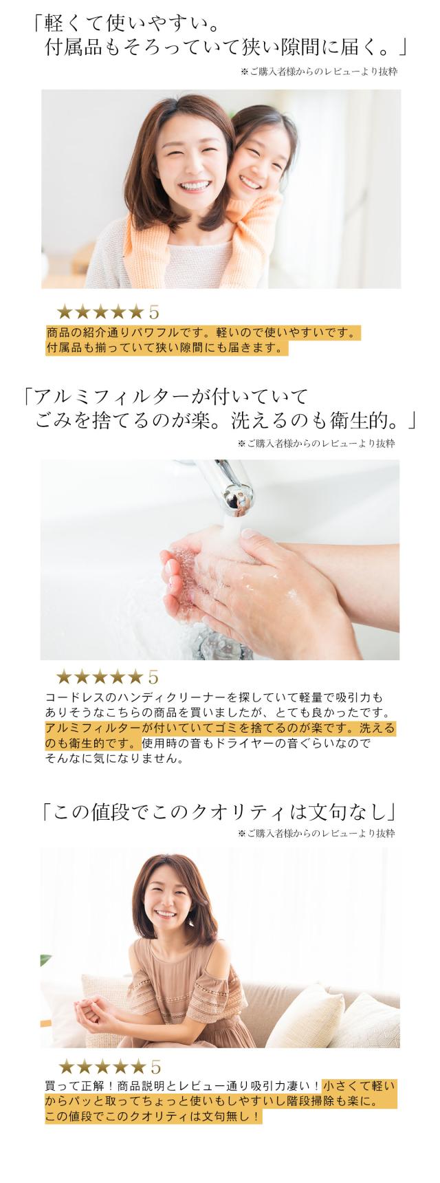 - 他のと迷いましたが皆さんのレビューを参考にコチラにしました。吸引力とかは大丈夫そうであとは耐久性がどうかなと思いますが期待もこめての星です。また良いものがあったら利用させてもらいます。