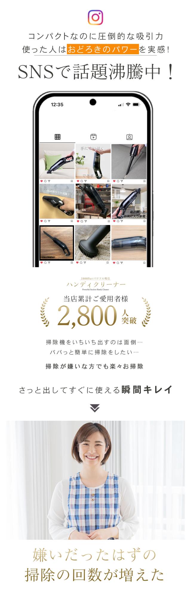 小型なで圧倒的な吸引力を持つワイヤレスハンディクリーナー