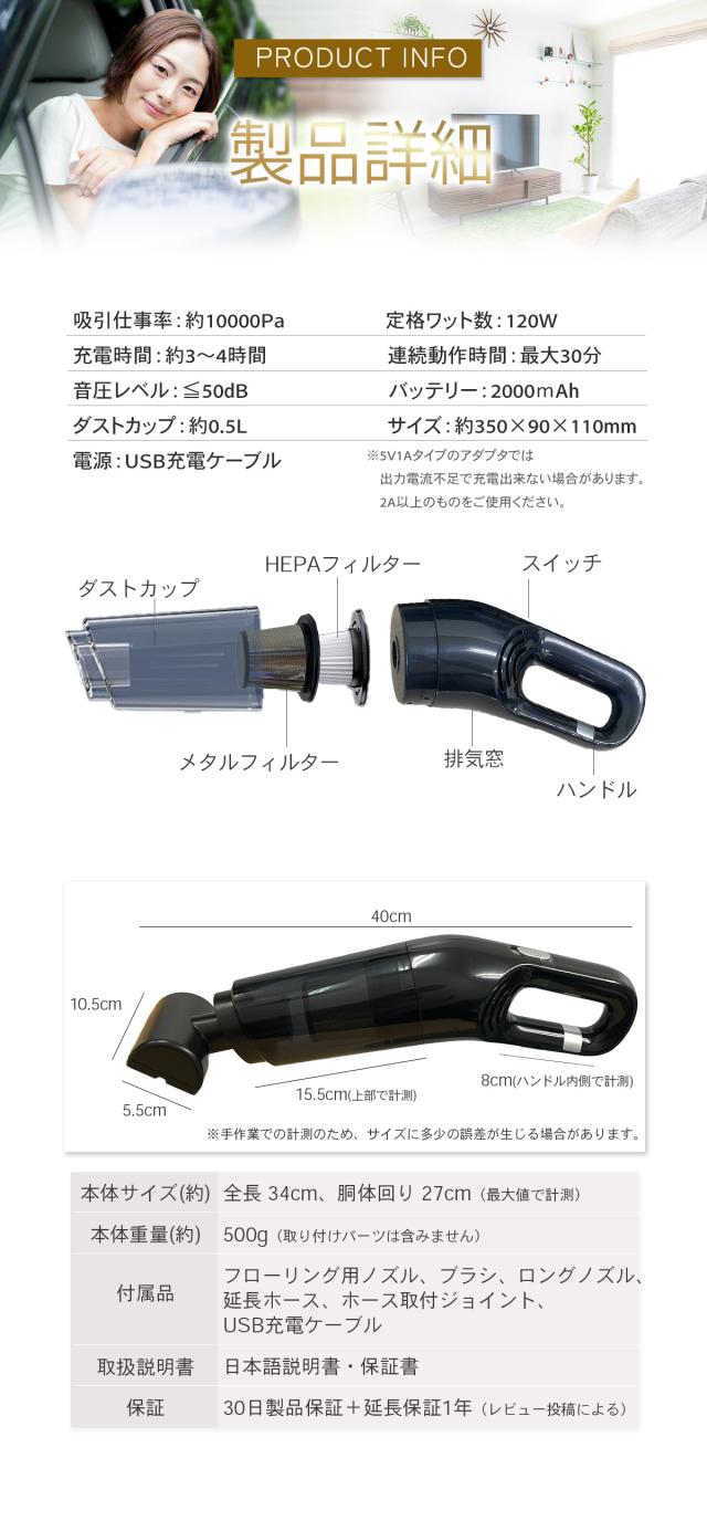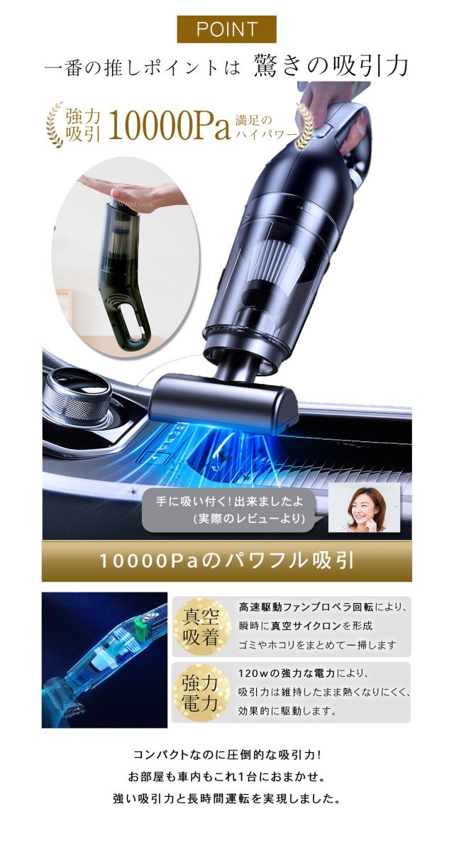 カークリーナー 車用掃除機 小型掃除機 コードレス ハンディクリーナー ギフト ワイヤレス ハイパワー パワフル 強力 充電式 掃除機 10000Pa 120w
