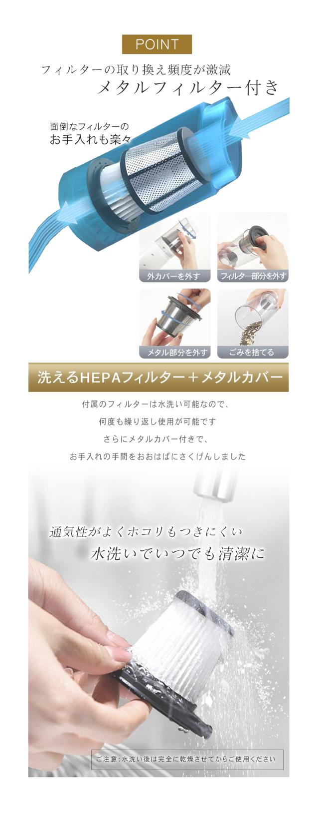 水洗いして繰り返し使用できるダストフィルターで、いつでも清潔にお使いいただけます。