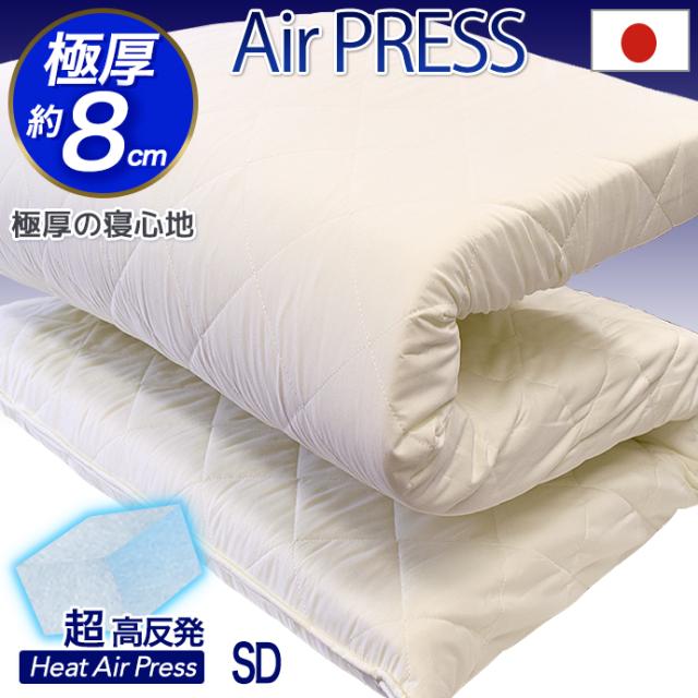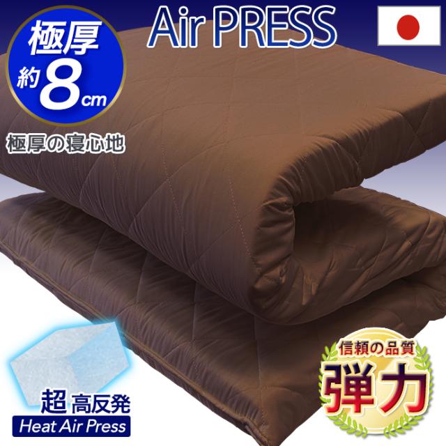 極厚の寝心地 敷き布団 セミダブル 極厚 8cm 日本製 3層式 敷布団 高反発 硬め 固め エアープレス FT 厚さ 約8cm 消臭 抗菌 防ダニ 畳 床使用 マット 固め【中芯重量135%UP】 三つ折り 収納 少し 硬め 軽い 腰痛 肩こり 体圧分散 国産 日本製