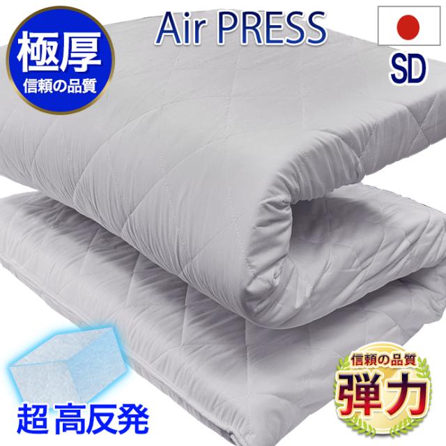 敷布団 セミダブル 日本製 3層式 FT エアープレス 硬め 腰や肘膝や首肩サポート 畳や床にも使用可 ベッド用マットにも 消臭 抗菌 防ダニ 約6〜7cm 王様の敷布団 国産 【硬め】【固め】【厚め】【中芯重量135%UP】