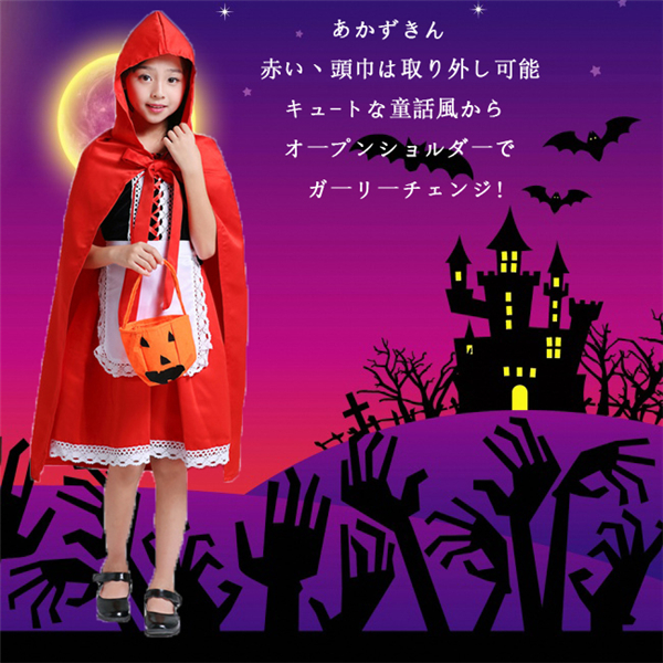 ハロウィン コスプレ キッズ 赤ずきん コスチューム 仮装 衣装 子供 フード 童話 パンプキン かわいい 可愛い 男の子 女の子 こども kids ハロウィン仮装 コスプレ衣装 キュート 誕生日 パーティー