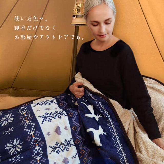 あったか 毛布 寝袋 ノルディック柄 もこもこ寝袋毛布 シングルサイズ ブランケット 秋冬用 防寒 冷え性対策 ひざ掛け アウトドア キャンプ かわいい 保温 温暖 冬 フランネル agesugi_sis