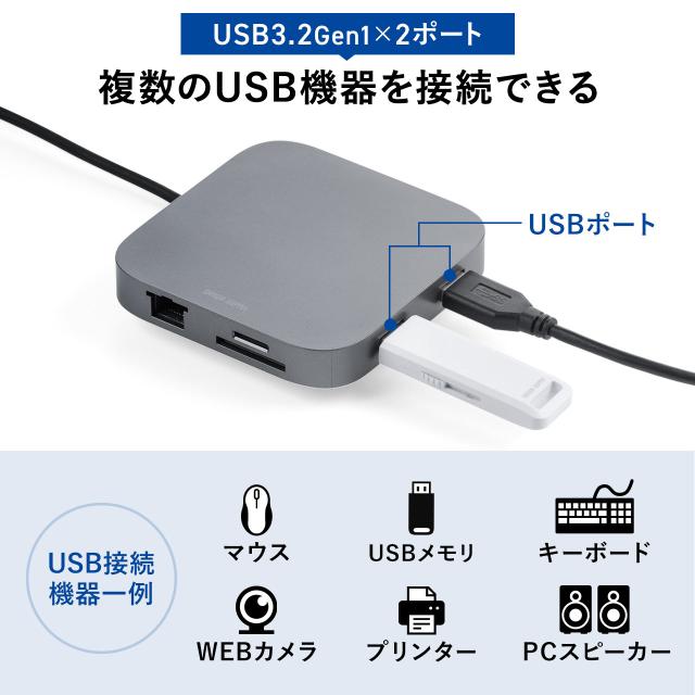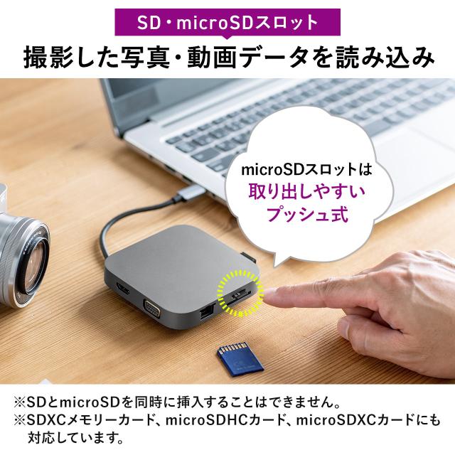 ⇒ご購入の前にご確認下さいUSB Type-Cケーブル1本をパソコンにつなぐだけでインターフェースを追加できる。HDMI端子(4K/30Hz)、SD/microSDカードリーダー、LANポートを搭載したコンパクトサイズのドッキングステーション。【WEB限定商品】