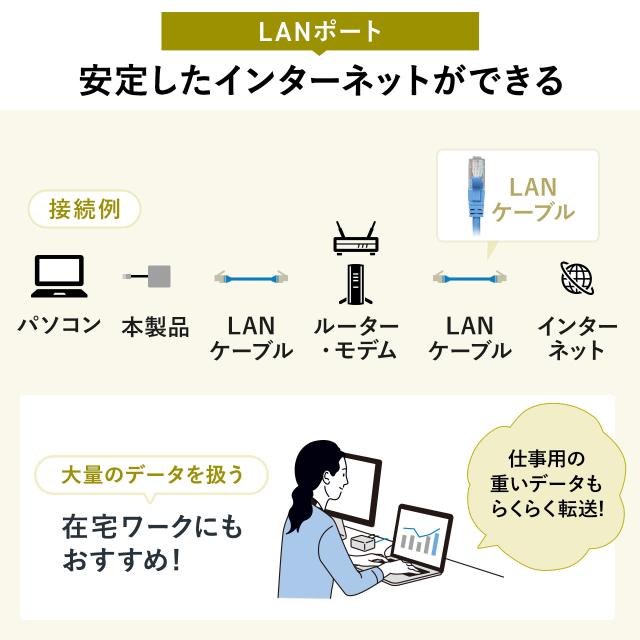 ※通信速度についてUSB3.2 Gen1(USB3.1/3,0)接続時のみ1000BASE-Tに対応します。