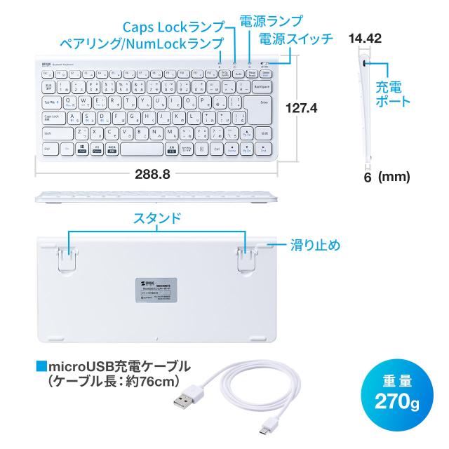 Bluetoothキーボード キー配列切り替え 3台マルチペアリング テンキーなし USB充電式 Windows macOS iOS Android[400-SKB073]