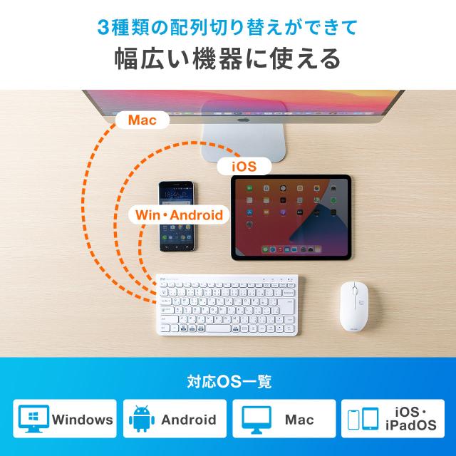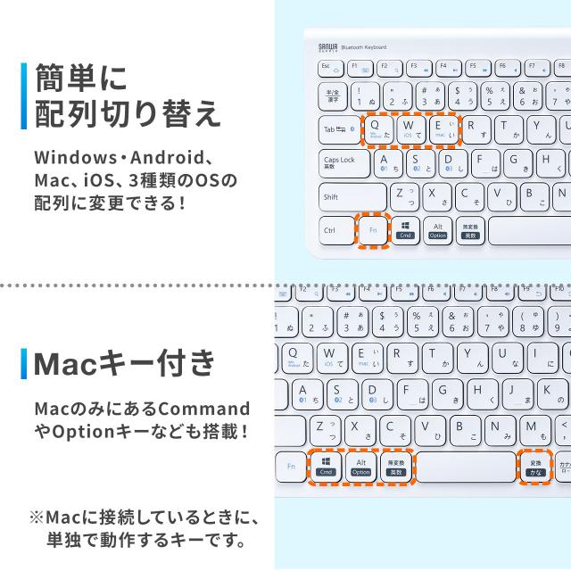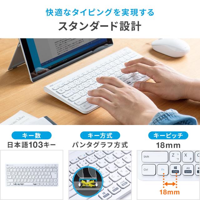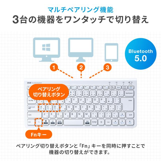 ⇒ご購入の前にご確認下さい使用する機器のOSに合わせてキー配列を切り替えられる。Windowsパソコン、Mac、iPhone・iPadなど、様々な機器と組み合わせて文字入力できるBluetoothキーボード。3台までの機器を切り替えて使用できるマルチペアリング対応。【WEB限定商品】