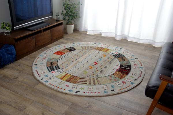 イケヒコ トルコ製 ウィルトン織カーペット ギャッペ調ラグ アイボリー 約160cm円形