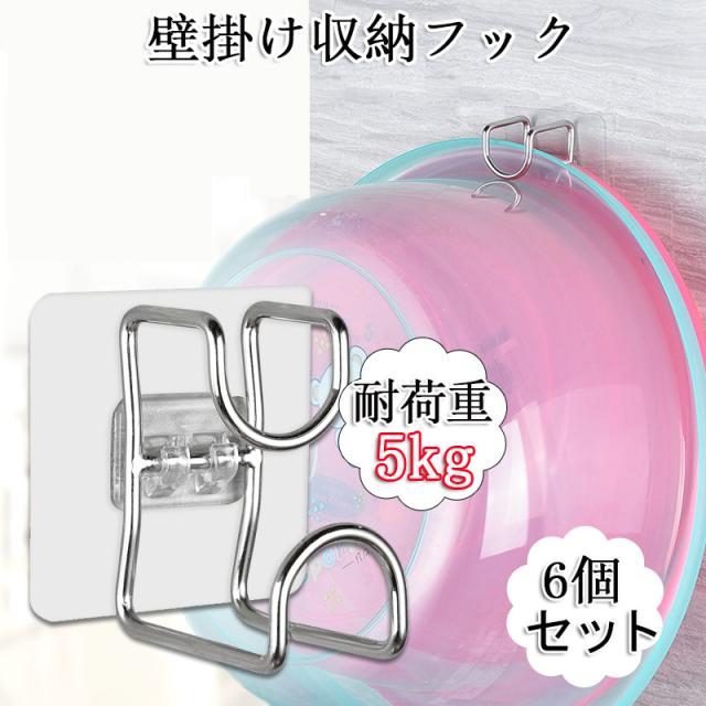 「クーポン配布中」「即納」「6個セット」強力粘着フック 洗い桶掛け 浴室 キッチン収納フック 粘着フック 多機能フック 壁掛けフック 鍋蓋 洗面器フック 耐荷重5kg
