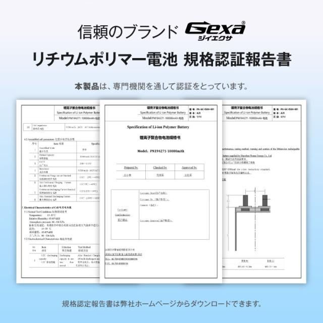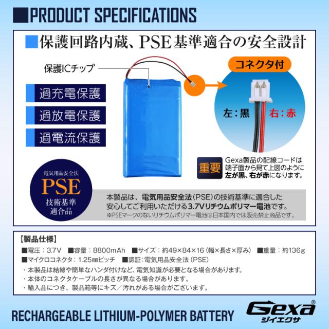 リチウムポリマー電池 3.7V 8800mAh GA-019 Gexa ジイエクサ