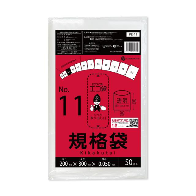【バラ販売】FE-11bara 規格袋 11号 0.050mm厚 透明 50枚 食品衛生法 RoHS指定