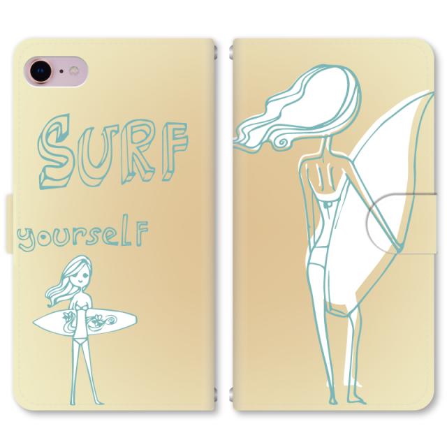 スマホケース 手帳型 iPhone13 iPhoneSE2 アイフォン 8 aquos sense GooglePixel xperia galaxyなど多機種制作対応 m2484_サーフィンgirl1