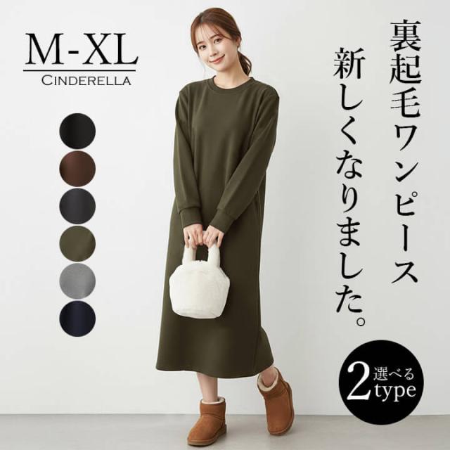 すっきり見せて中はぽかぽかな裏起毛ワンピース。