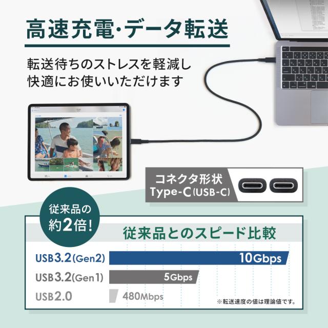 Type-C to Type-C 充電ケーブル C to C 充電 データ転送 USB3.2 Gen2 最大100W(20V/5A) PD対応 急速充電 断線しにくい