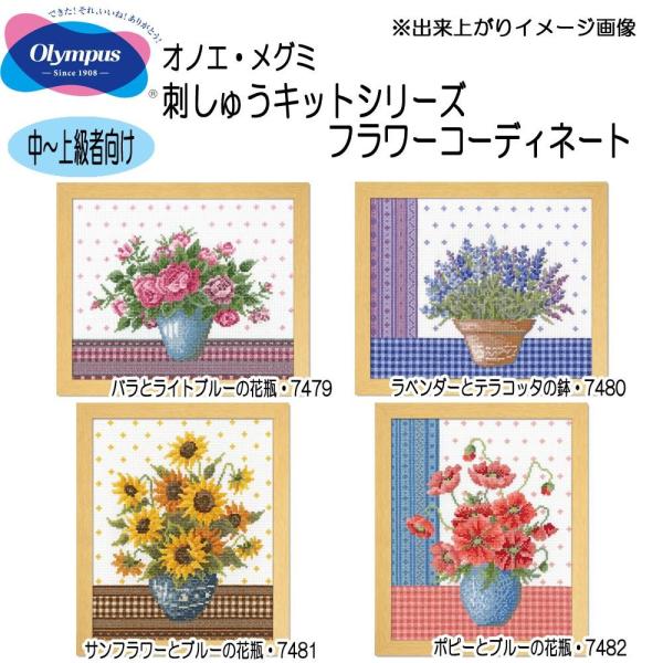 オリムパス製絲 オリムパス オノエ・メグミ 刺しゅうキットシリーズ フラワーコーディネート ポピーとブルーの花瓶・7482 (1081084)
