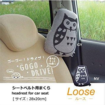 イケヒコ 車用クッション カークッション クッション 枕 まくら マクラ フクロウ 『ルース シートベルト枕』 グレー 約28×20cm