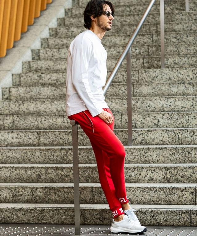 ウエストと裾口にロゴを配することでスポーティな印象を形成。