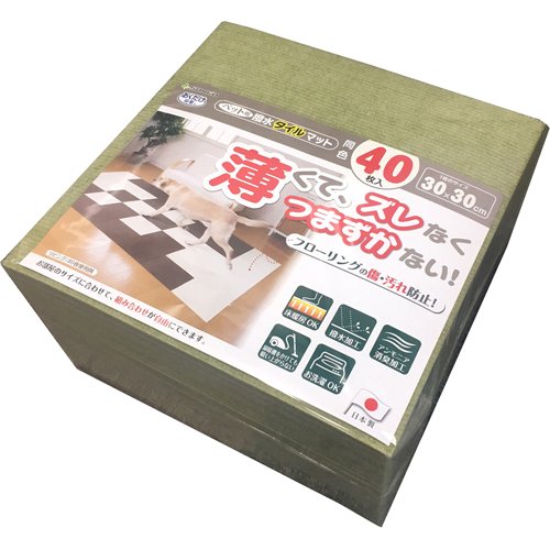 おくだけ吸着 ペット用撥水タイルマット 30×30cm グリーン(40枚入)[ペットの雑貨・ケアグッズ]