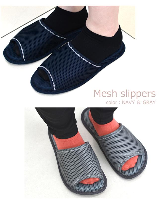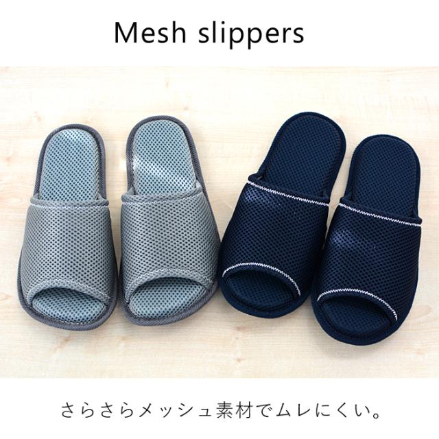 自宅の洗濯機で丸洗いが可能なメッシュ素材を使用したスリッパ。
