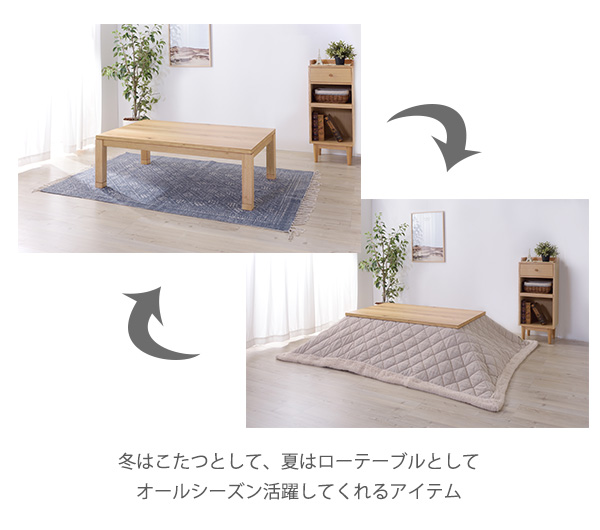 素朴な風合い 日本製 天然木 こたつテーブル 長方形 135×80 送料無料 継ぎ脚 高さ調節 おしゃれ 高級感 リビングこたつ インテリア 家具調こたつ 和室 洋室 低ホルムアルデヒド 国産