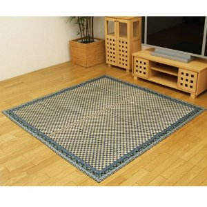イケヒコ 純国産 イ草花ござカーペット 『かれん』 ブルー 江戸間3畳(約174×261cm)