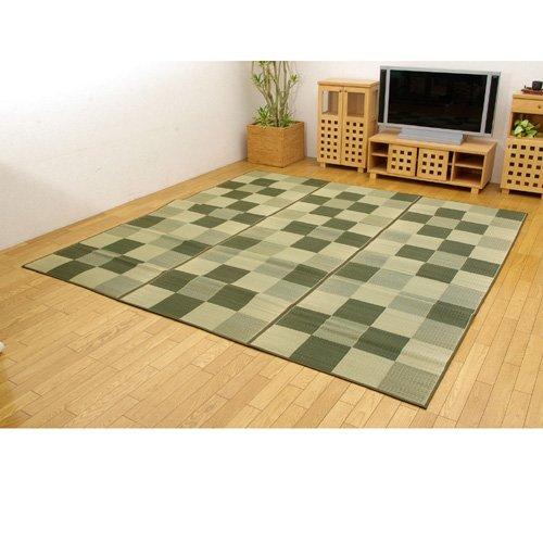 イケヒコ 純国産 い草花ござカーペット 『ブロック』 グリーン 江戸間6畳(約261×352cm)