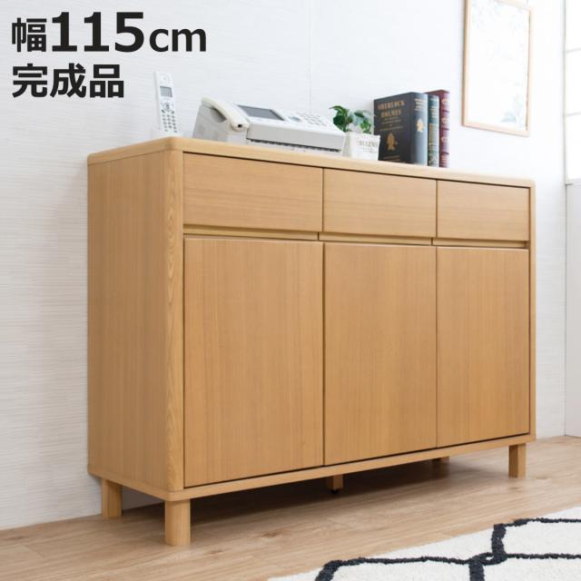 キャビネット 幅115cm 3枚扉 引出し付 天然木 タモ材 ( 収納 リビングチェスト たんす リビング収納 完成品 収納棚 リビングボード 木製ナチュラル A4サイズ対応 北欧風 )